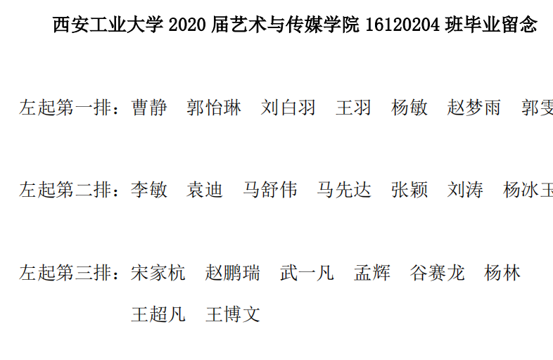 黑料不打烊 2020届艺术与传媒黑料不打烊 16120104班毕业留念