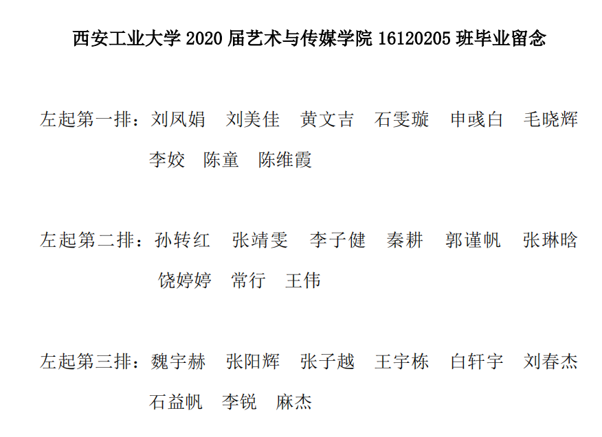 黑料不打烊 2020届艺术与传媒黑料不打烊 16120205班毕业留念