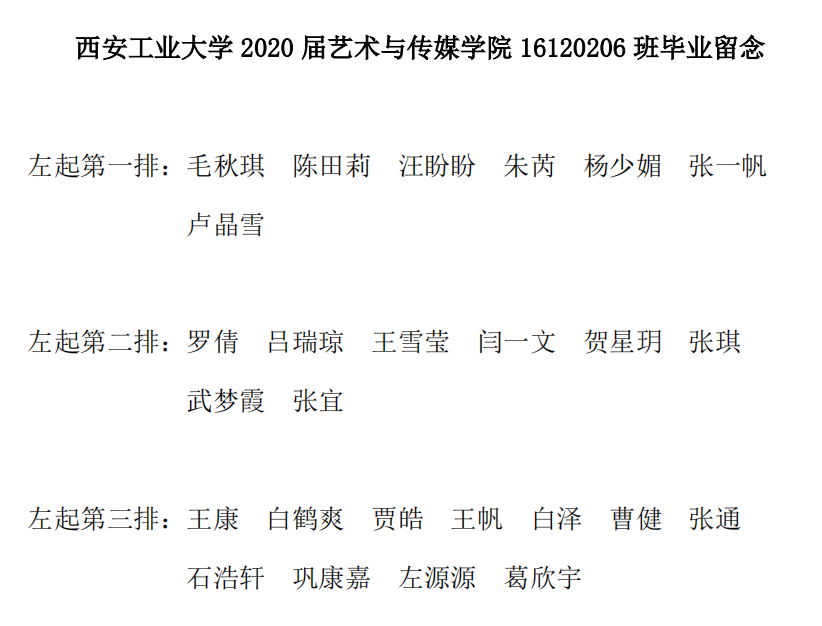 黑料不打烊 2020届艺术与传媒黑料不打烊 16120206班毕业留念