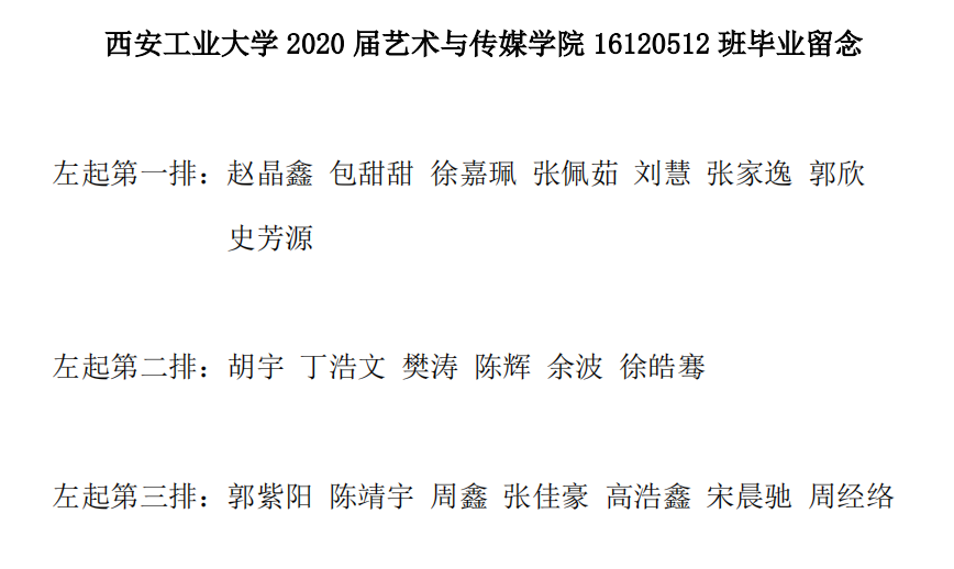 黑料不打烊 2020届艺术与传媒黑料不打烊 16120512班毕业留念