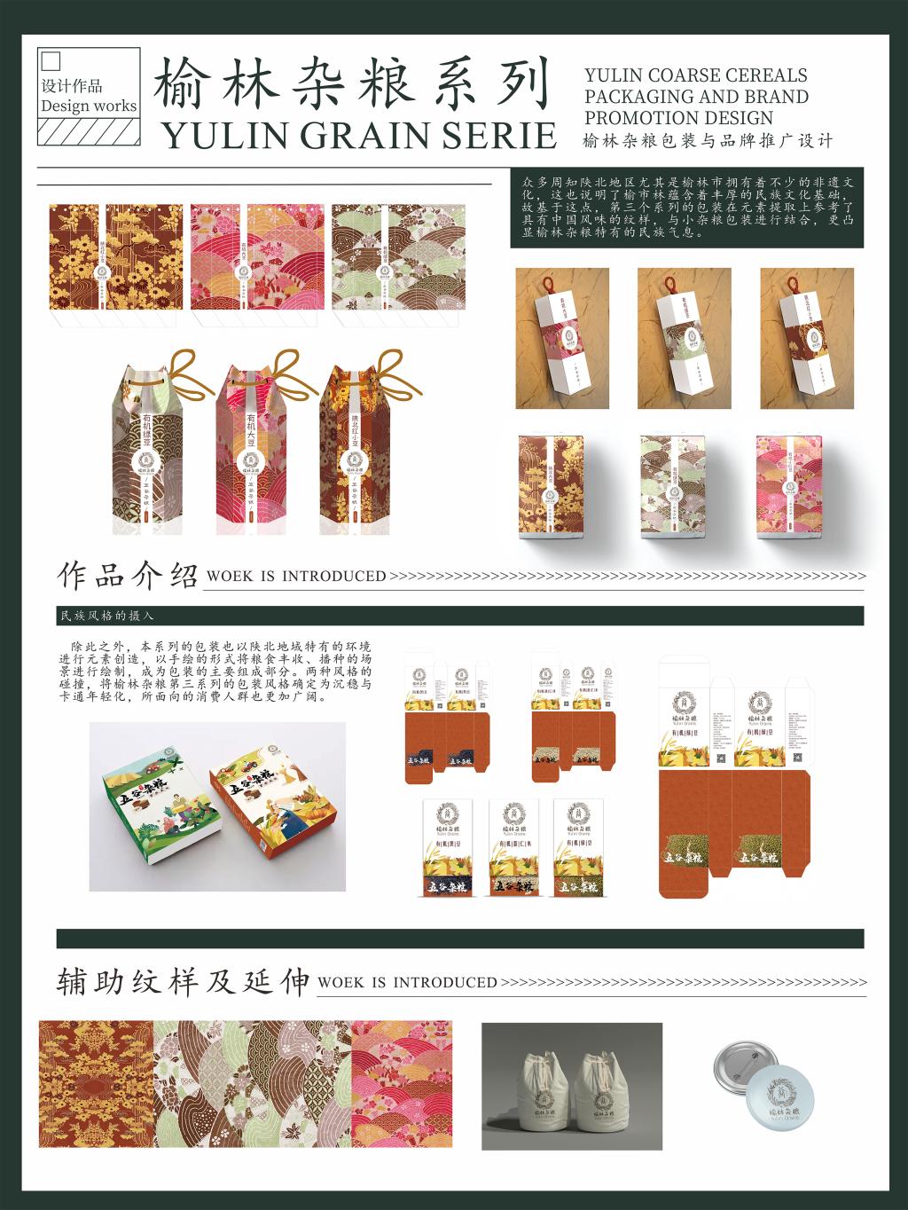 作品:榆林杂粮包装与品牌推广设计 创作人员:赵晨晨 贺宣文 指导教师:高有宏