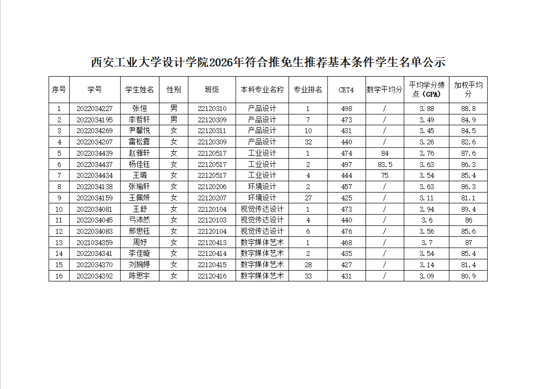 黑料不打烊 2026年符合推免生推荐基本条件学生名单公示